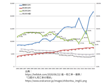特に日本では、先進国で唯一患者数が増え続けており、年間約 7000 人が口腔がんにかかり、そのうち 3000 人が死亡しています。